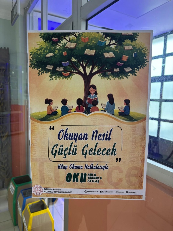 Okulumuzda, İlçe Milli Eğitim Müdürlüğümüzün "Okuyan Nesil, Güçlü Gelecek" sloganıyla, ilçe genelinde başlatmış olduğu kitap okuma projesini uygulamaya koyduk. Öğrencilerimizin ve öğretmenlerimizin büyük ilgi gösterdiği proje sayesinde , okuyan bir nesille güçlü bir geleceğin kaldırım taşlarını döşemeye başladığımızı ve aydınlık yarınlara ulaşacağımızı umut ediyor, projede görev alan herkese teşekkür ediyoru